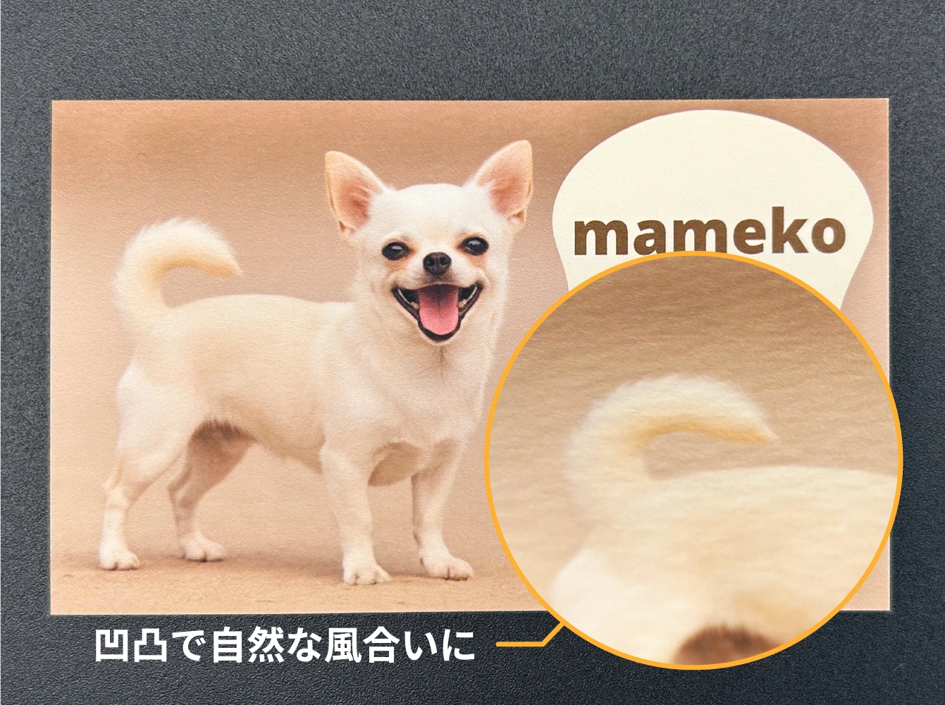 極小ドットできめ細かく印刷することで、犬や猫のふわふわの毛並みやキラキラした瞳まで輪郭くっきりと、なめらかなトーンに仕上がります。